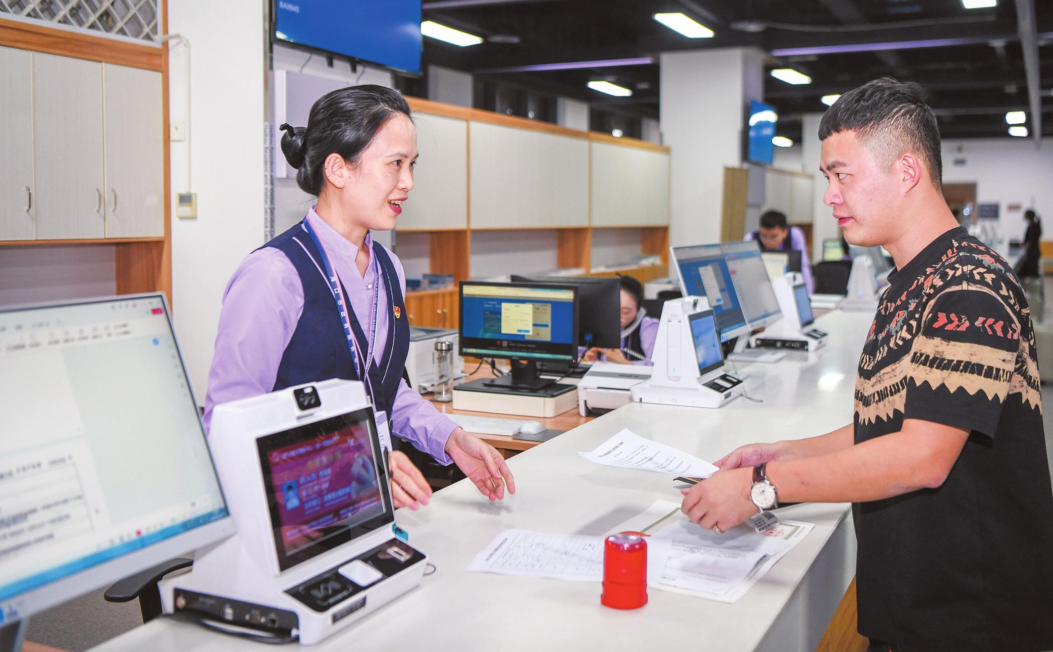 11月18日,在??谑姓辗沾髲d“黨員先鋒崗”前,工作人員正在為市民辦理相關業(yè)務。 記者 蘇弼坤 攝
