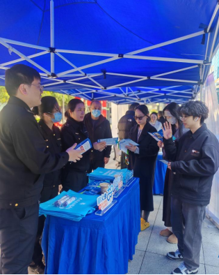 圖為執(zhí)法人員在商圈為商戶(hù)和市民開(kāi)展普法宣傳