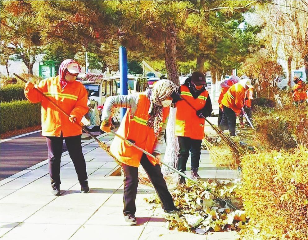 秋冬時節(jié)落葉堆積,喀左縣環(huán)衛(wèi)工人加緊清理,維護(hù)市容市貌。 賀培培 攝