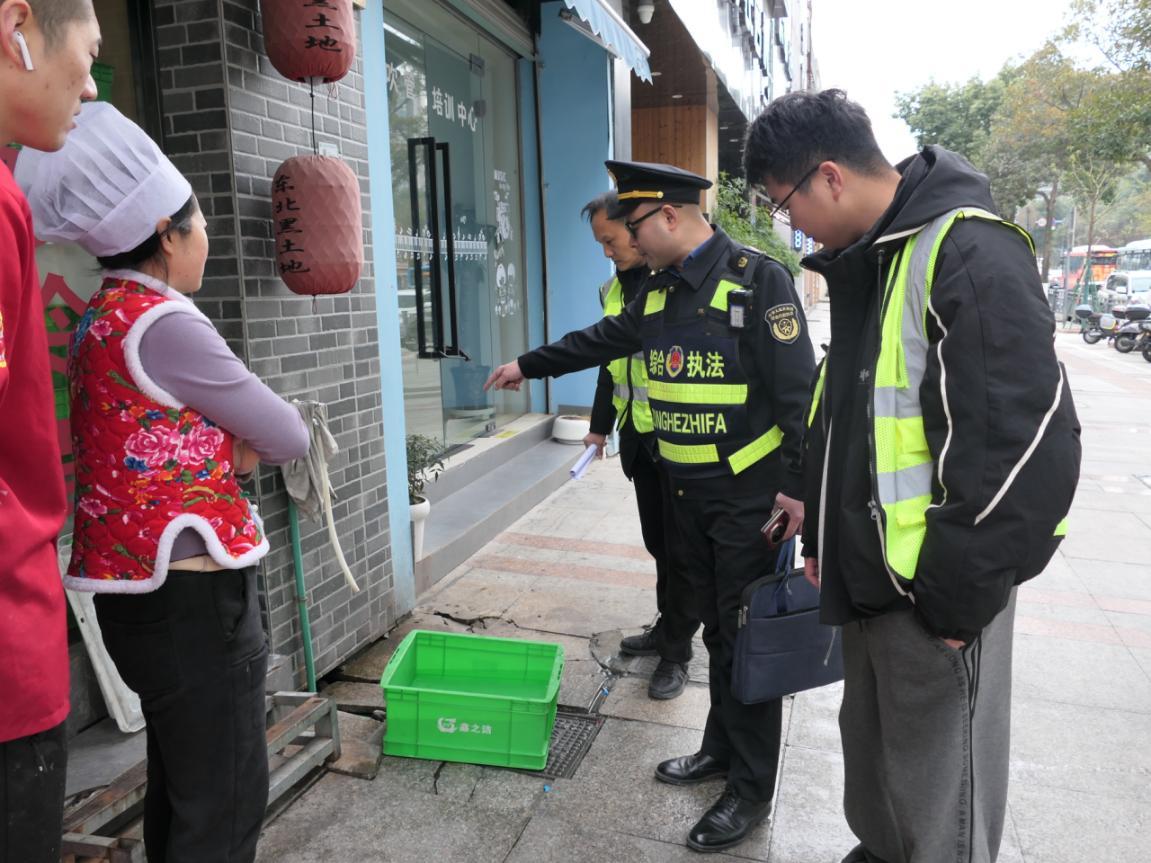 群眾的急難愁盼就是執(zhí)法的發(fā)力點。了解情況后,綜合行政執(zhí)法局立即啟動協(xié)同治理機制,第一時間協(xié)調排水公司、屬地街道執(zhí)法隊組成聯(lián)合幫扶小組,直奔現場“把脈開方”。針對店鋪的實際困境,幫扶小組敲定了一套簡單易行的整改方案:在店門口原有自來水管的基礎上,將排水管道從雨水井改接到街道污水井;同時在水龍頭下方增設專用洗碗池,從源頭實現污水的規(guī)范收集與排放。