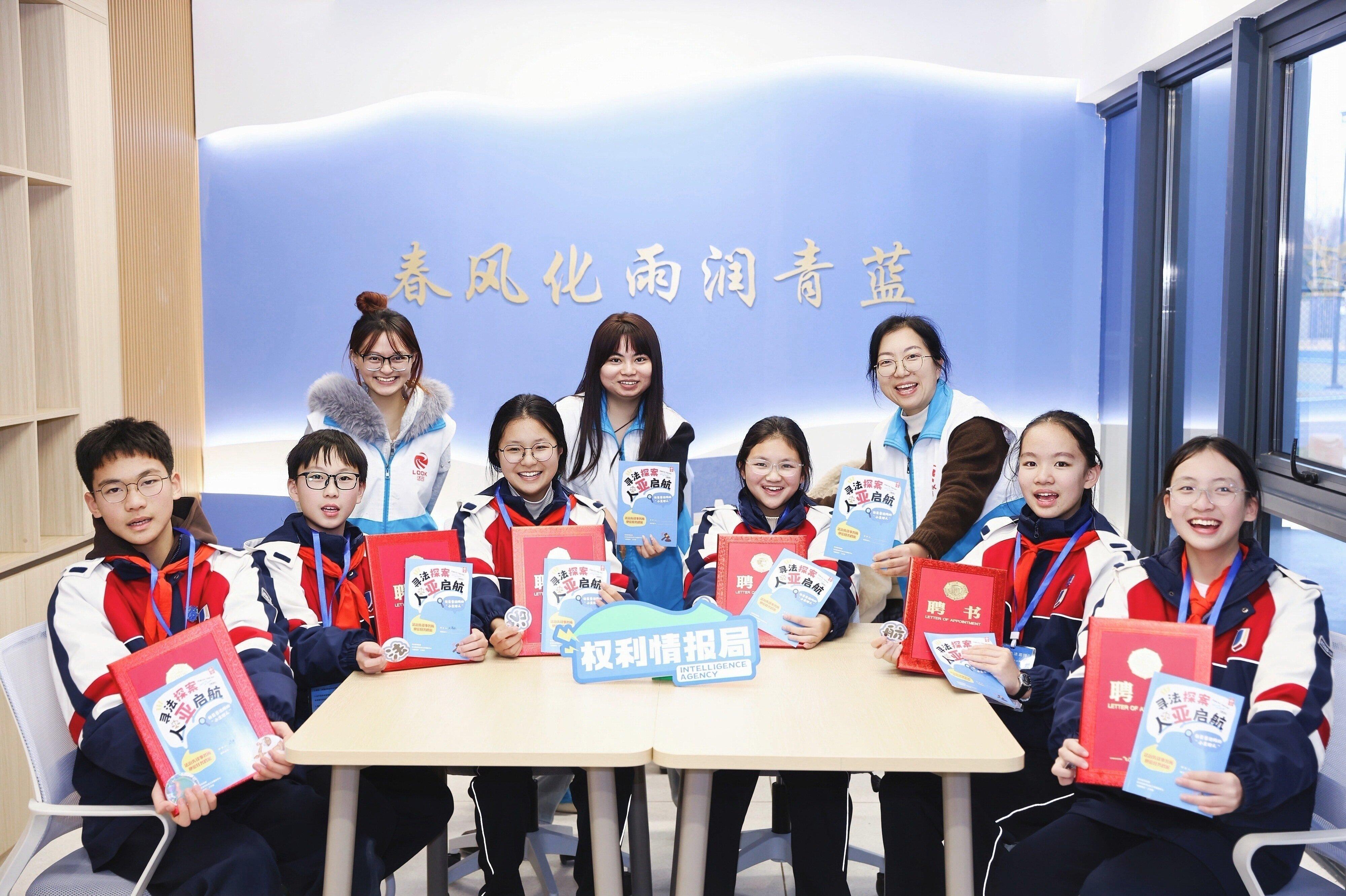 啟動(dòng)儀式結(jié)束后,“法雨春風(fēng)”工作室里第一堂法治實(shí)踐課開課了。課程以“尋法探案?人亞啟航”為主題,摒棄單向說教,將普法陣地化為“探案現(xiàn)場”。法治委員化身“法治先鋒見習(xí)探員”,分組手持探案手冊(cè)、線索卡等道具,在“權(quán)利情報(bào)局”“義務(wù)仲裁庭”“規(guī)則設(shè)計(jì)所”三大站點(diǎn)闖關(guān),通過權(quán)利快問快答、校園糾紛情景演繹、共創(chuàng)班級(jí)法治公約等任務(wù)解鎖法治密碼。