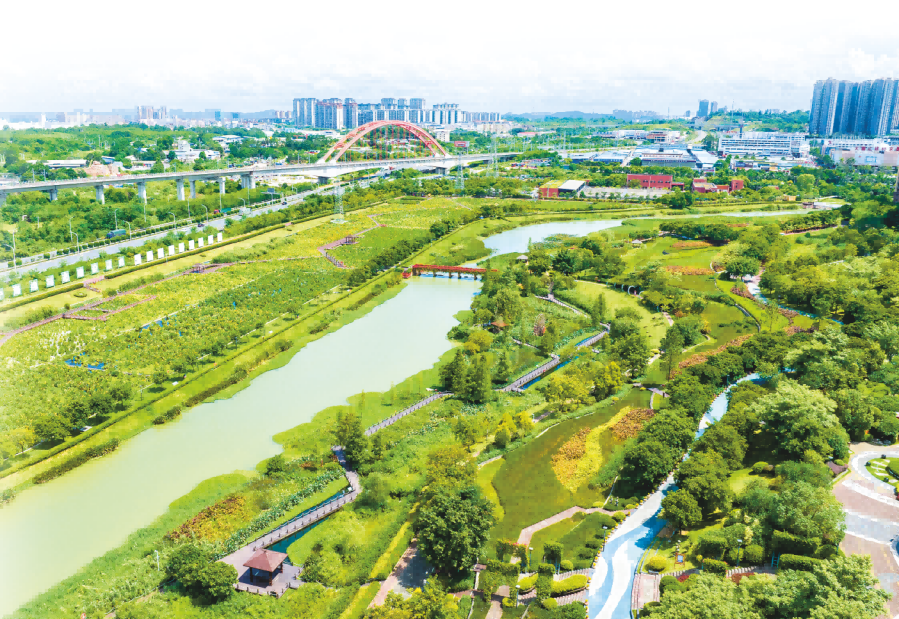 那考河濕地公園草木蔥蘢、鮮花綻放,親水步道、涼亭等設施一應俱全。記者 黃維業(yè) 攝