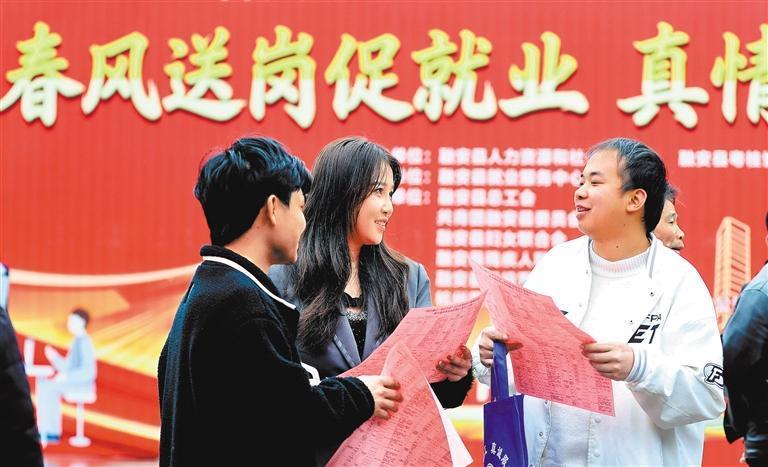 2月25日,廣西壯族自治區(qū)柳州市融安縣長安廣場,求職者在了解招聘崗位信息。覃慶和攝(中經視覺)