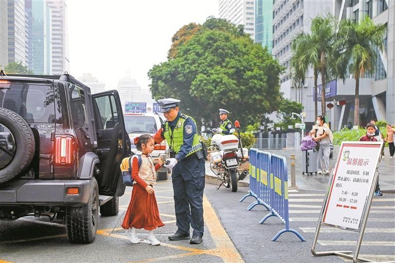 3月2日,2026年春季新學(xué)期開學(xué)首日恰逢周一早高峰,通勤與送學(xué)車流“雙疊加”,學(xué)校周邊道路交通壓力增大。為守護學(xué)生安全入校、保障周邊交通秩序順暢,深圳交警全面啟動新學(xué)期“護學(xué)”行動,以“地面疏導(dǎo)+空中巡查”立體化管理模式,加強警力值守、無人機護航、現(xiàn)場疏導(dǎo)、安全勸導(dǎo),多措并舉守護新學(xué)期校園交通安全。(深圳特區(qū)報記者 解樹森 賴?yán)?攝影報道)