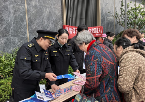 執(zhí)法人員在周宿渡社區(qū)興樾府小區(qū)外設(shè)立便民咨詢臺,圍繞文明裝修、文明養(yǎng)犬、垃圾分類、市容環(huán)境等社區(qū)熱點問題向過往群眾開展普法宣傳?!靶^(qū)樹木屬于公共財產(chǎn),不可私自砍伐”“房屋裝修產(chǎn)生的垃圾需交給有資質(zhì)的單位清運”……面對居民的提問,執(zhí)法人員郭鵬飛耐心地一一講解,引導(dǎo)群眾自覺遵守法律法規(guī),現(xiàn)場共發(fā)放宣傳資料80余份。