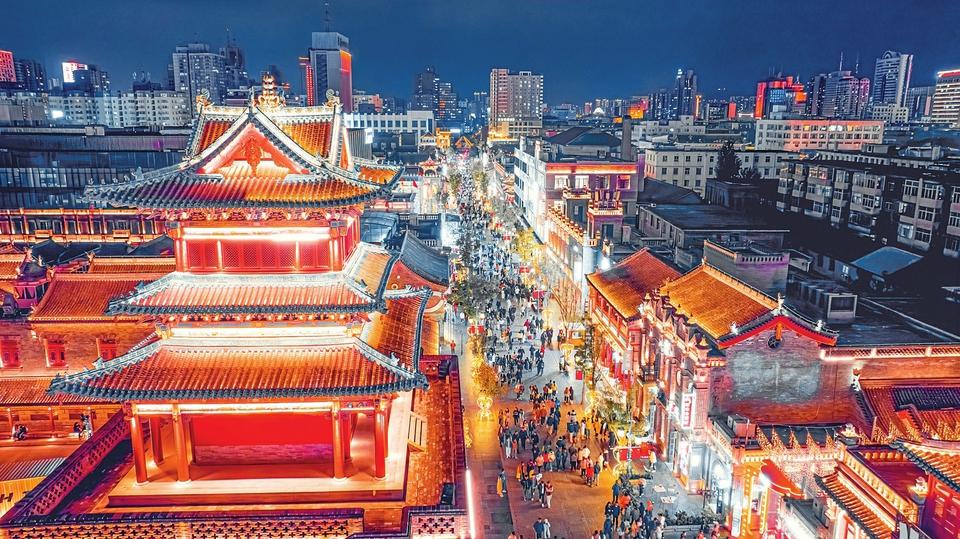 2025年國(guó)慶假期的鐘樓街夜景,讓人流連忘返。太原鐘樓街管理中心供圖