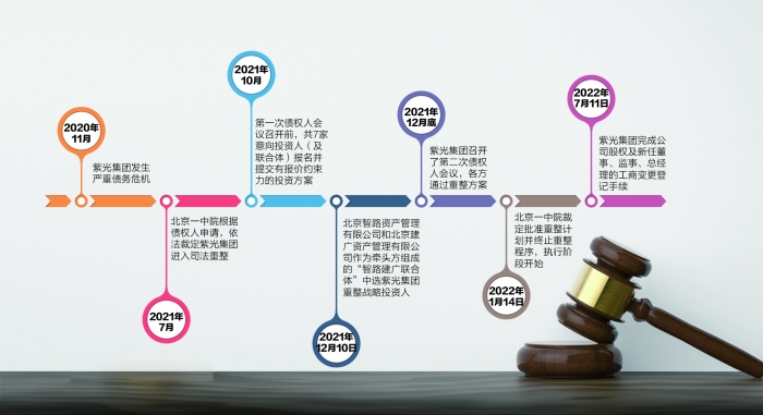從2020年11月發(fā)生債務(wù)危機(jī),到如今進(jìn)入收官階段,紫光集團(tuán)債務(wù)危機(jī)化解和司法重整工作用時(shí)1年8個(gè)月。