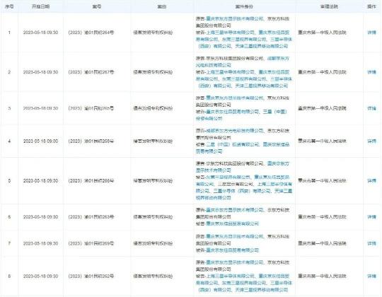 近日,天眼查網(wǎng)站顯示,京東方科技集團(tuán)股份有限公司新增多則開庭公告。原告還包括重慶京東方顯示技術(shù)有限公司、成都京東方光電科技有限公司,被告則包括上海三星半導(dǎo)體有限公司、三星(中國)投資有限公司、東莞三星視界有限公司、三星半導(dǎo)體(西安)有限公司、天津三星視界移動(dòng)有限公司等多家三星相關(guān)公司,以及重慶京東佳品貿(mào)易有限公司。