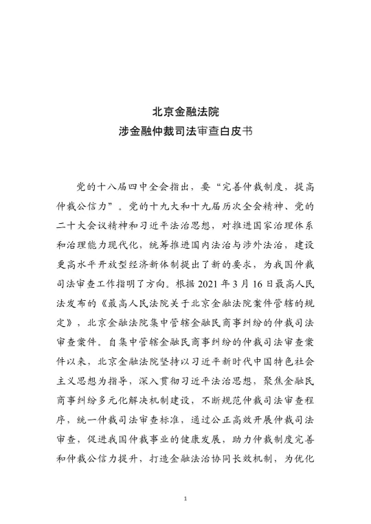 《北京金融法院涉金融仲裁司法審查白皮書》
