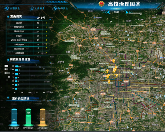 在該界面可以查看涉高校案件案由分布情況、各高校案件數(shù)量情況、涉案人員身份情況等。