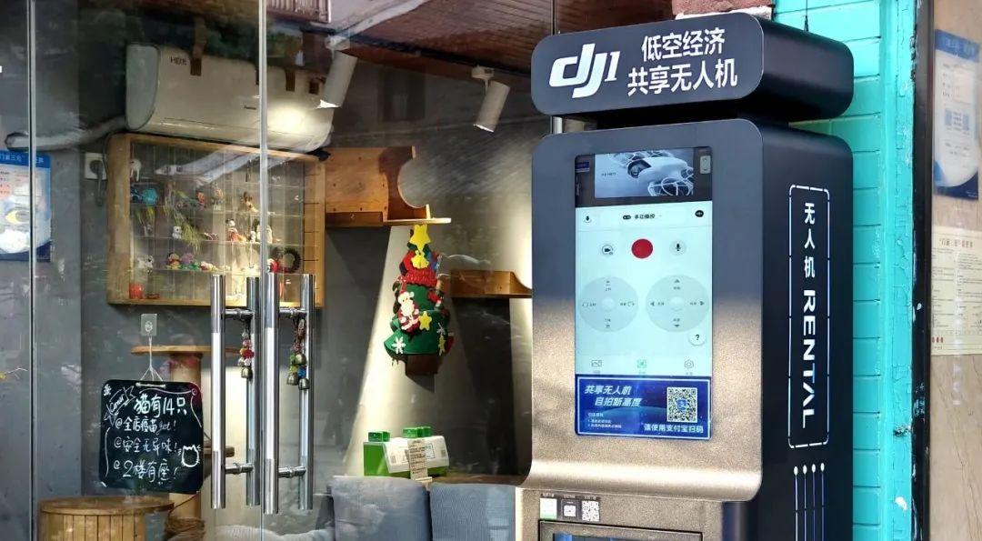 ▲4月10日,武漢曇華林步行街,商家用“DJ1”柜子出租大疆 DJI 無人機(jī)。 CFP