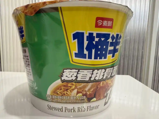 熱銷的今麥郎 “1 桶半” 桶裝方便面面餅標(biāo)注的克數(shù)為 110g,產(chǎn)品外包裝上注明:“不是兩桶買不起,而是1桶半更有性價(jià)比:與今麥郎彈面小桶產(chǎn)品對(duì)比” 等字樣。