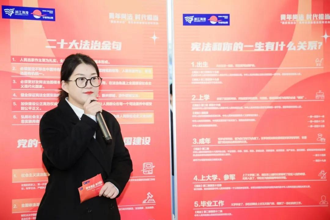 活動(dòng)現(xiàn)場特別設(shè)置了憲法授課、憲法飛行棋、法律連連看、“法”影重重、法律問答、合規(guī)分分樂等六個(gè)法律主題趣味互動(dòng)區(qū)域,通過“學(xué)憲集章”打卡的形式,引導(dǎo)參與者在參觀中學(xué)習(xí)、在互動(dòng)中領(lǐng)悟,現(xiàn)場學(xué)習(xí)氛圍濃厚。憲法館講解員與集團(tuán)普法志愿者也同步在現(xiàn)場向廣大群眾開展憲法法治和海港法治建設(shè)實(shí)踐宣傳。