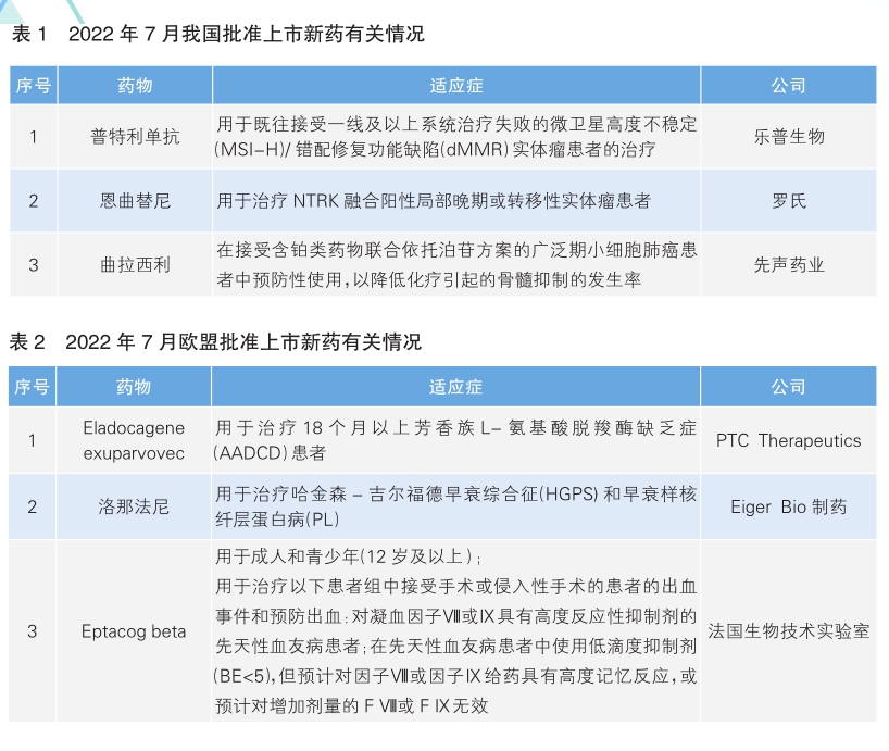 7月份,我國(guó)共批準(zhǔn)3款新藥上市(詳見表1),其中附條件批準(zhǔn)的普特利單抗為我國(guó)藥企樂(lè)普生物自主研發(fā)。
