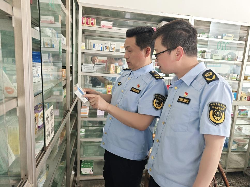 南漳縣市場監(jiān)管局執(zhí)法人員對“華康藥房”進(jìn)行執(zhí)法檢查。 吳采平/攝
