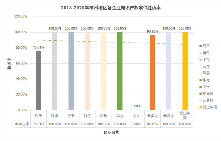 2、互聯網企業(yè)在杭州地區(qū)知識產權案件勝訴率情況
