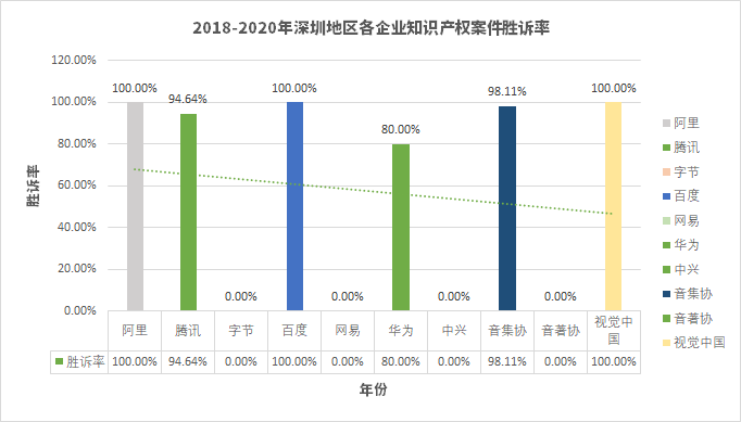 3、互聯網企業(yè)在深圳地區(qū)知識產權案件勝訴率情況