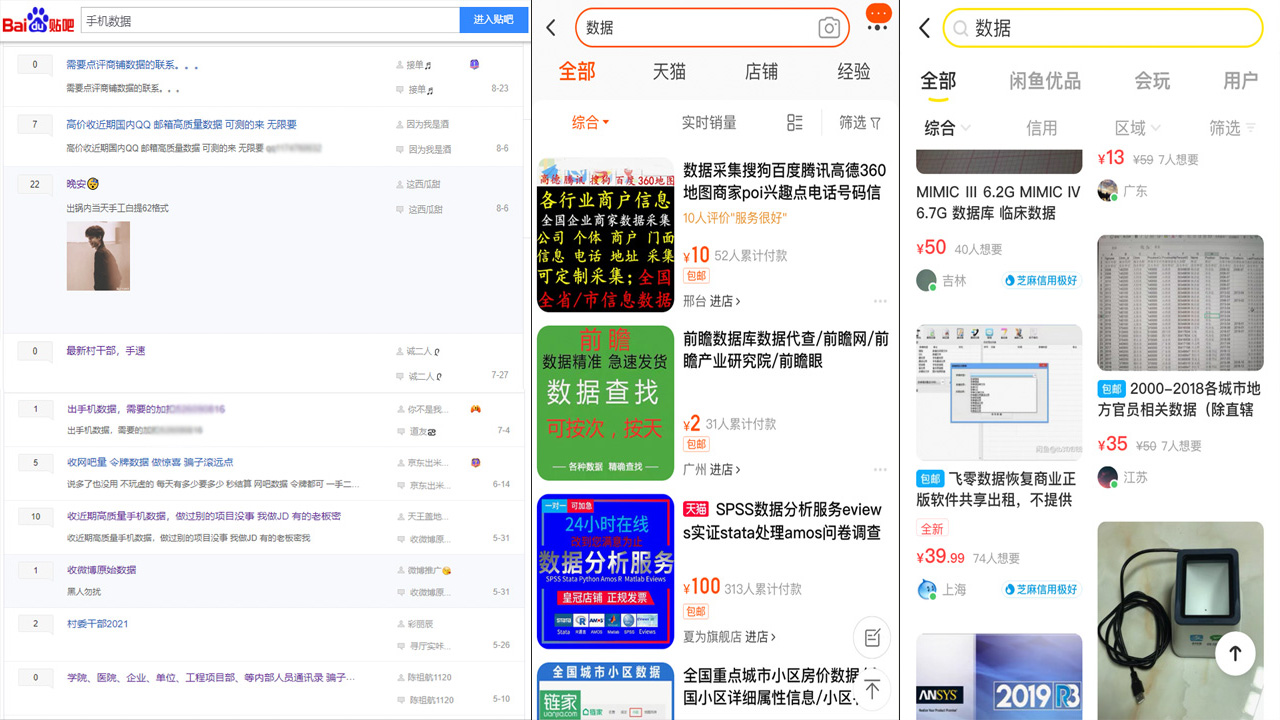 灰色數(shù)據(jù)交易藏匿于百度貼吧、淘寶、閑魚等平臺。