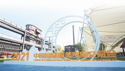 八月三十一日拍攝的二〇二一年中國(guó)國(guó)際服務(wù)貿(mào)易交易會(huì)首鋼園展區(qū)。 |