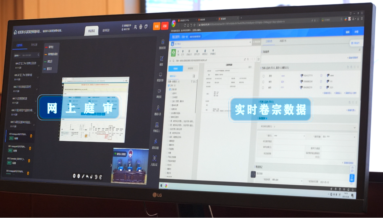 融合5G、物聯(lián)網(wǎng)技術(shù)、虛擬背景、語音識別、微表情分析等技術(shù),建設(shè)互聯(lián)網(wǎng)法庭,取消原被告、書記員以及證人席位,實現(xiàn)互聯(lián)網(wǎng)案件在線審理,法官庭審和辦公場所一體化。利用5G高速度、低延時、重構(gòu)安全的特性,實現(xiàn)在線庭審過程中安全可靠的高清視頻實時通訊。通過微表情分析展示訴訟參與人的呼吸速度、心跳頻率、緊張程度,便于法官掌握當事人情緒變化,控制庭審節(jié)奏,必要時進行心理舒緩。虛擬背景、虛擬法槌模擬在線庭審環(huán)境和司法器物,利用語音識別轉(zhuǎn)寫生成庭審筆錄,電子簽名技術(shù)對筆錄進行簽字確認,全屋IOT智能控制法庭端設(shè)備開關(guān)。