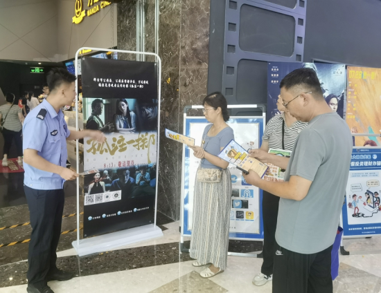 影片開始前,該分局反詐中心民警通過在影院醒目位置張貼反詐海報(bào)、發(fā)放反詐手冊、懸掛反詐條幅、擺放反詐展板、講解反詐知識、問答互動等多種形式,向觀影群眾普及反詐知識,讓大家對當(dāng)前電信網(wǎng)絡(luò)詐騙發(fā)案形式及種類有了更直觀、更深刻的認(rèn)識。此外,民警還現(xiàn)場指導(dǎo)大家下載安裝國家反詐中心APP。