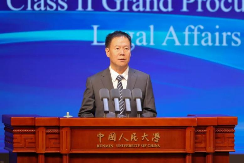 圖為中國(guó)法學(xué)會(huì)黨組書記、常務(wù)副會(huì)長(zhǎng)王洪祥在開幕式上致辭。
