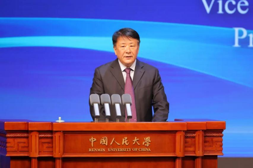 圖為中國(guó)人民大學(xué)黨委書記張東剛在開幕式致辭。