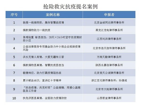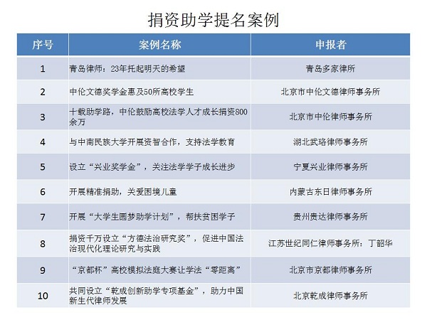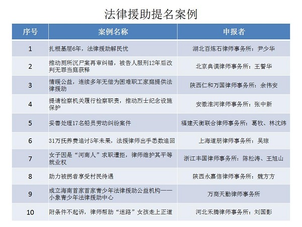 結(jié)合公眾投票和專家評(píng)審,十大律師公益類別最終產(chǎn)生了一百個(gè)典型案例,一百個(gè)提名案例。