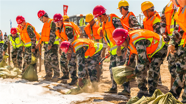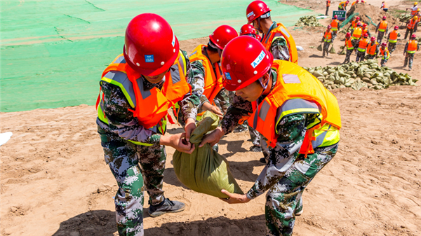 隨著警報(bào)拉響,演練活動正式開始。100名防汛隊(duì)員分成5個(gè)小組開展應(yīng)急搶險(xiǎn)、人員救治、疏導(dǎo)撤離等演練項(xiàng)目,各小組密切配合,按照既定路線將受災(zāi)村民有條不紊地轉(zhuǎn)移到安全地帶。演練還特別設(shè)定了大堤漫堤場景,現(xiàn)場緊急調(diào)度搶險(xiǎn)人員攜帶防汛器材和物資,進(jìn)行沙袋填裝、加固防護(hù),歷時(shí)半個(gè)小時(shí),演練項(xiàng)目全部按計(jì)劃完成,達(dá)到預(yù)期效果。