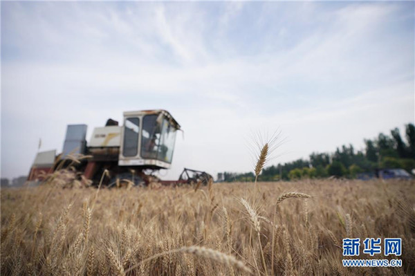 6月13日,雄安新區(qū)大王鎮(zhèn)小王村村民在收獲小麥。 近日,雄安新區(qū)小麥陸續(xù)成熟,當?shù)卮迕駬屪マr(nóng)時進行收獲。 新華社記者 朱旭東 攝