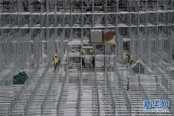 京雄城際鐵路雄安站總建筑面積47萬(wàn)平方米,地上3層,地下2層,其中地下主體結(jié)構(gòu)將于近期完成,即將轉(zhuǎn)入地上主體結(jié)構(gòu)施工。 新華社記者 邢廣利 攝