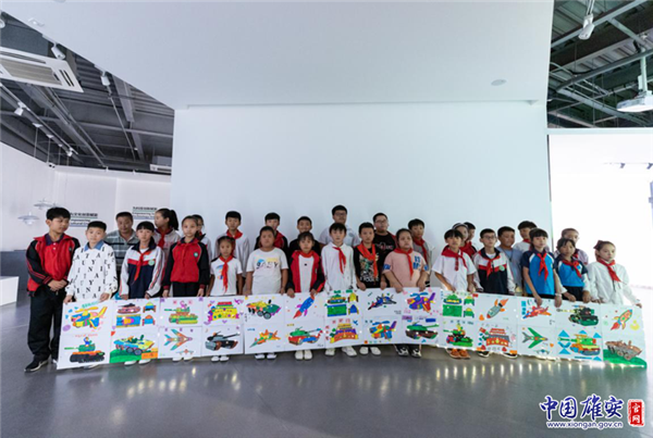 孩子們與自己設(shè)計(jì)的作品合影留念。中國(guó)雄安官網(wǎng)發(fā)
