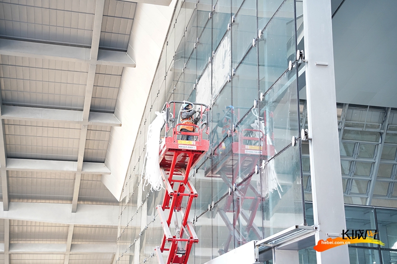 12月16日,雄安站站房內(nèi),吊頂、打磨、清理、裝扮……建設(shè)者們正在緊張地進行裝飾裝修工作,在雄安站開通運營最后的沖刺階段,留下最美的身影。(記者 胥文燕 王守一)