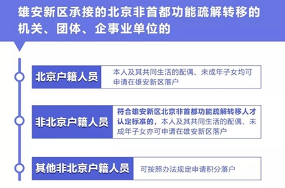 答:除雄安新區(qū)承接的北京籍轉(zhuǎn)移人口、引進(jìn)的人才、原籍雄安新區(qū)的大中專院校學(xué)生、直系親屬投靠且按相關(guān)規(guī)定可在雄安新區(qū)直接辦理落戶的人員外,在雄安新區(qū)合法穩(wěn)定就業(yè)并居住的非雄安新區(qū)戶籍人員,符合本辦法規(guī)定條件申請(qǐng)積分落戶的,適用本辦法。