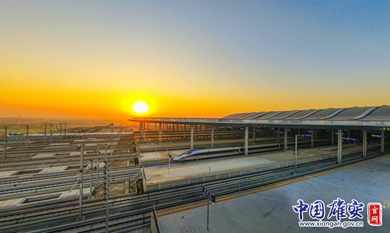 2021年1月1日07:56,新年的首趟列車(chē)駛出京雄城際鐵路雄安站。任雙歡 攝