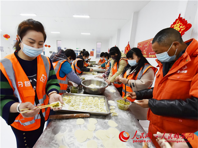 雄安新區(qū)容東片區(qū)B1組團(tuán)安置房項目留雄過年建設(shè)者包餃子。