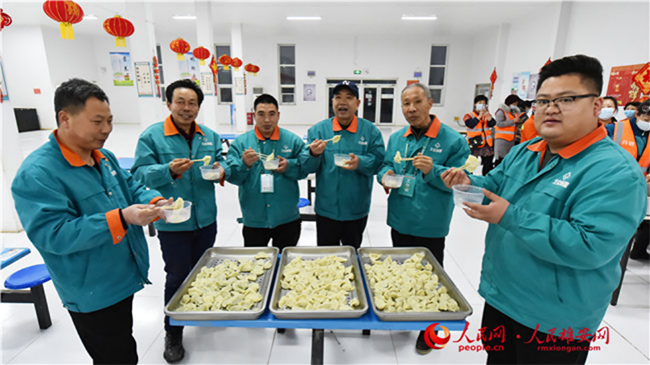雄安新區(qū)容東片區(qū)B1組團(tuán)安置房項目留雄過年建設(shè)者吃餃子過大年。
