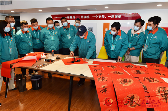 雄安新區(qū)容東片區(qū)B1組團(tuán)安置房項目留雄過年建設(shè)者寫春聯(lián)。