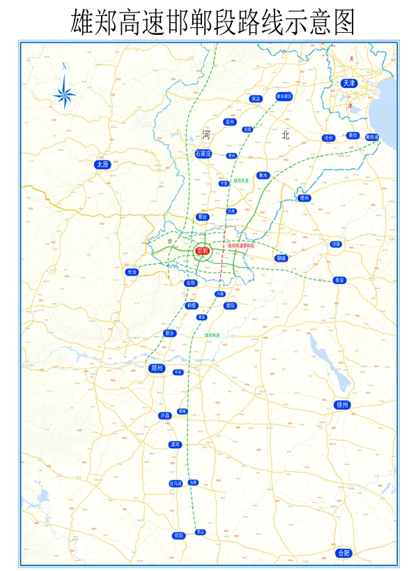 雄安新區(qū)至鄭州高速公路位于京港澳和大廣高速公路之間,北起雄安新區(qū),南至冀豫界后,向南和河南省規(guī)劃的安陽(yáng)至羅山高速公路對(duì)接,形成雄安通達(dá)武漢的高速大通道。