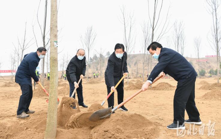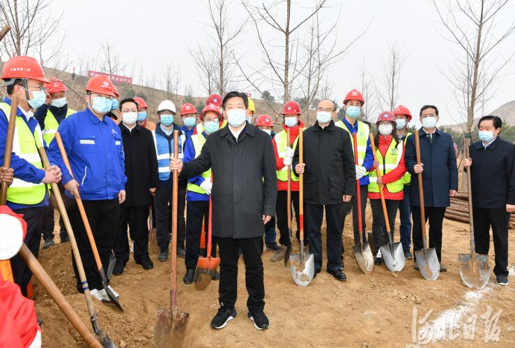 2021年3月12日是第43個(gè)植樹節(jié)。上午,省委書記、省人大常委會(huì)主任王東峰,省委副書記、省長許勤,省政協(xié)主席葉冬松,省領(lǐng)導(dǎo)袁桐利、高志立、張國華、范照兵在雄安新區(qū)雄安郊野公園開展義務(wù)植樹活動(dòng),帶頭推進(jìn)國土綠化行動(dòng)。河北日?qǐng)?bào)記者趙威 攝