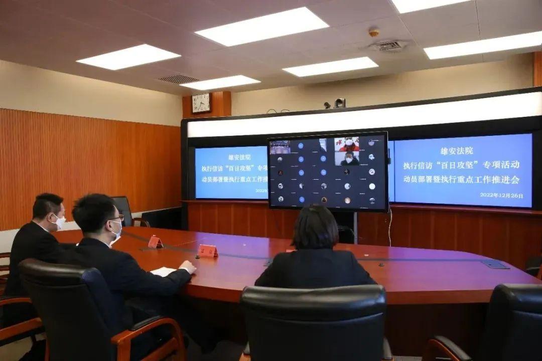 為深入傳達(dá)落實(shí)全國法院執(zhí)行信訪工作推進(jìn)會及河北全省法院執(zhí)行信訪“百日攻堅(jiān)”專項(xiàng)活動動員部署會精神,攻堅(jiān)執(zhí)行信訪案件化解,切實(shí)回應(yīng)人民群眾在執(zhí)行領(lǐng)域急難愁盼,12月26日下午,雄安中院組織召開全區(qū)法院執(zhí)行信訪“百日攻堅(jiān)”專項(xiàng)活動動員部署暨執(zhí)行重點(diǎn)工作推進(jìn)會,進(jìn)一步統(tǒng)一思想、明確目標(biāo)、突出重點(diǎn)、壓實(shí)責(zé)任。