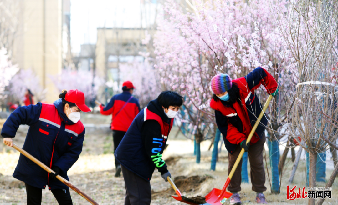 3月12日,容東片區(qū)富興園小區(qū)居民與物業(yè)人員攜手種下“希望樹”。河北新聞網(wǎng)記者劉光昱攝