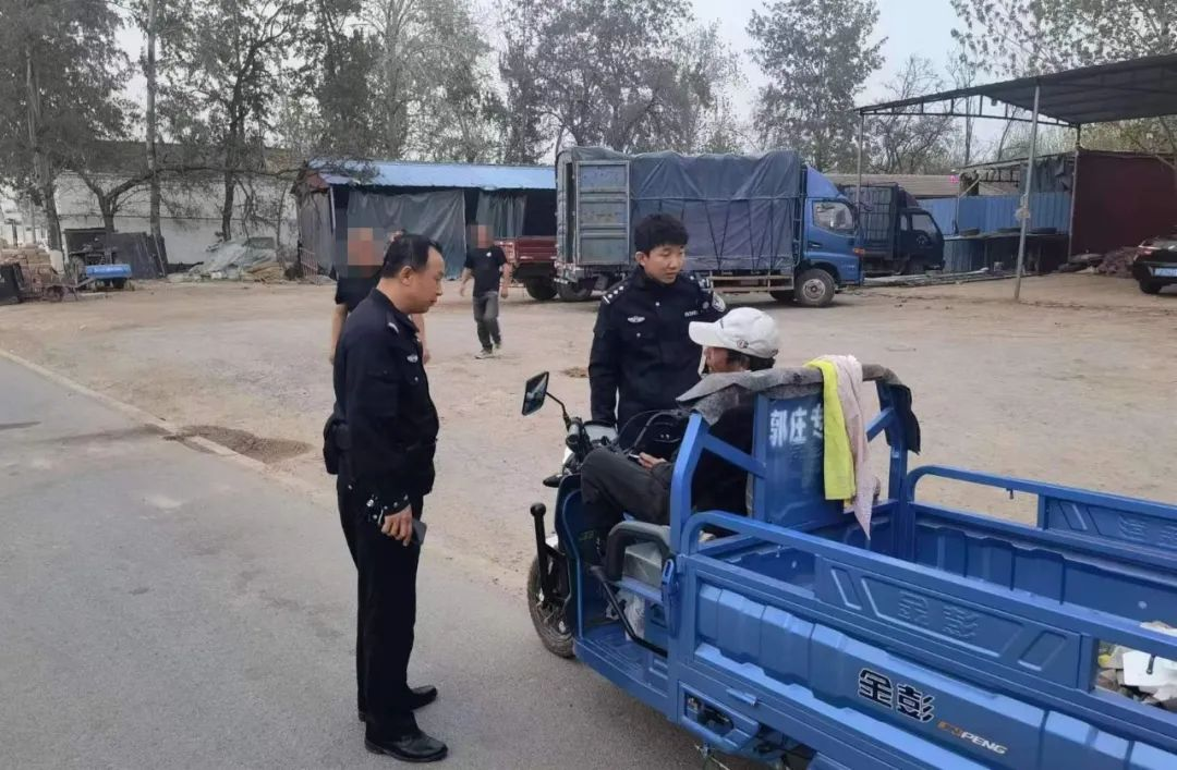 4月10日19時許,雄縣公安局雙堂派出所民警在轄區(qū)巡邏時,發(fā)現(xiàn)路中央停著一輛電動三輪車,車上有一位六十歲左右的老人,過往的車輛紛紛繞行,民警立即停車,將老人與車輛帶到了安全地帶。