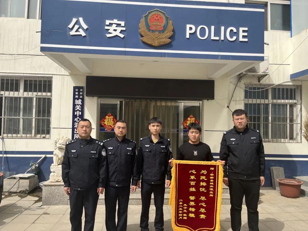 孩子轉(zhuǎn)危為安后,幼童家屬將一面印有“為民排憂 盡心盡責(zé) 心系百姓 警界楷?!钡腻\旗送到民警手中,對民警的熱心幫助表示衷心感謝。