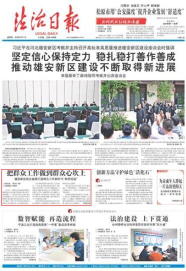 據(jù)《法治日報》記者了解,近年來,雄安新區(qū)一手抓陣地建設(shè),一手建體制機(jī)制,一手提服務(wù)水平,三管齊下打造群眾工作的“雄安樣板”。