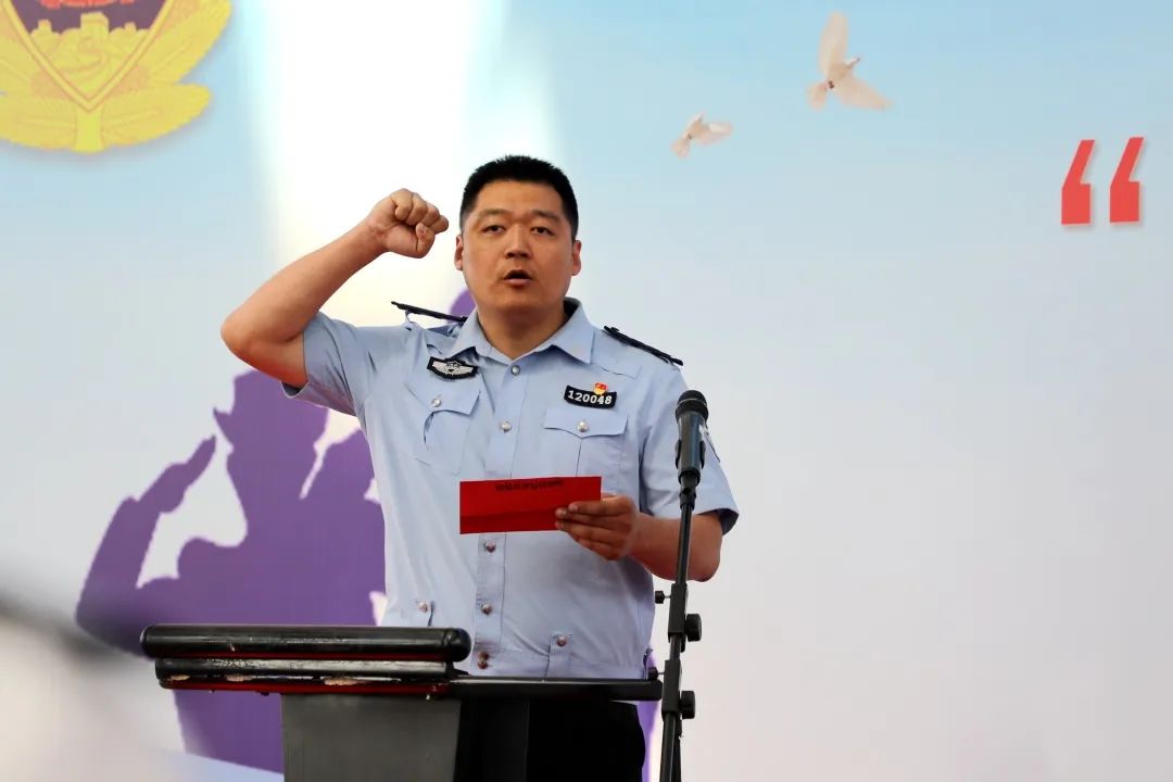 開幕式現(xiàn)場,全體人員隊(duì)列整齊、警容嚴(yán)整,莊嚴(yán)奏唱《中華人民共和國國歌》,裁判員代表和運(yùn)動(dòng)員代表分別進(jìn)行宣誓。