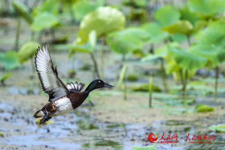 人民網(wǎng)雄安6月25日電 (劉師豪、宋燁文)近日,來自雄安新區(qū)安新縣的愛鳥護(hù)鳥志愿者、生態(tài)攝影師張學(xué)農(nóng)在白洋淀某處水域發(fā)現(xiàn)了約30只國家一級(jí)保護(hù)野生動(dòng)物青頭潛鴨的身影,并且拍到了青頭潛鴨雌鳥與雛鳥活動(dòng)的影像。