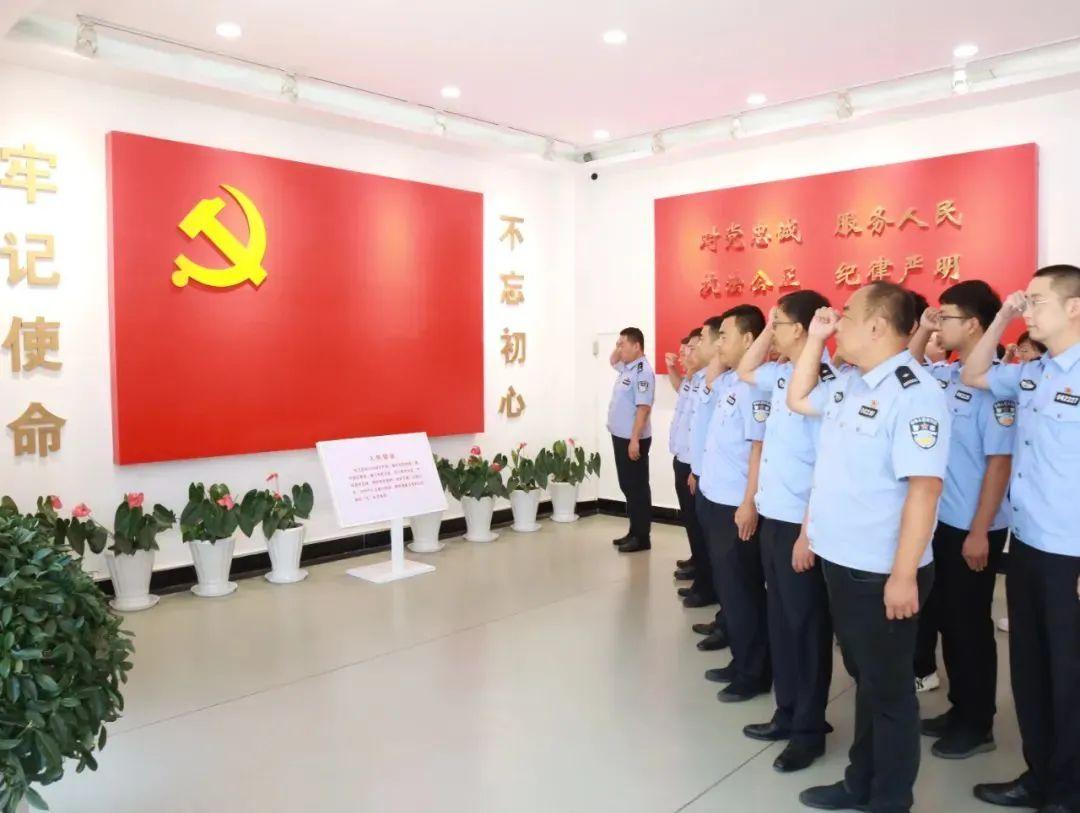 面對鮮紅的黨旗,全體人員一起高舉右拳,莊嚴宣誓:“我志愿加入中國共產黨……隨時準備為黨和人民犧牲一切,永不叛黨”。莊嚴的誓詞,強烈震撼著在場的每一位黨員,一字一句,神圣而豪邁,體現(xiàn)了每個黨員對黨忠誠、矢志不渝的堅定決心,堅定了為黨和人民的事業(yè)奮斗終生的理想和信念。局黨委要求,全體黨員民輔警要牢記入黨誓言,永葆入黨初心,鑄就絕對忠誠的政治品格,提高善作善成的能力本領,永葆昂揚奮進的精神狀態(tài)。