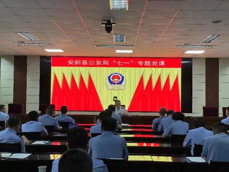 安新縣公安局舉行重溫入黨誓詞、講黨課等活動,安新縣副縣長、公安局黨委書記、局長姜壽國領誓入黨誓詞并以“感悟思想偉力,凝聚奮進力量”為題講授專題黨課。