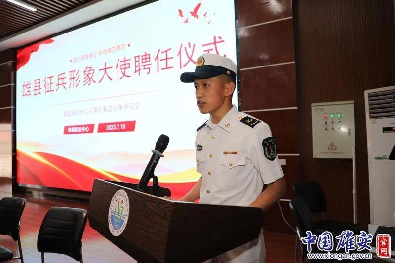 雄縣2023年征兵宣傳形象大使聘任儀式在雄安新區(qū)雄縣職教中心舉行,解放軍某部見(jiàn)義勇為軍士趙磊受聘為雄縣2023年征兵宣傳形象大使。